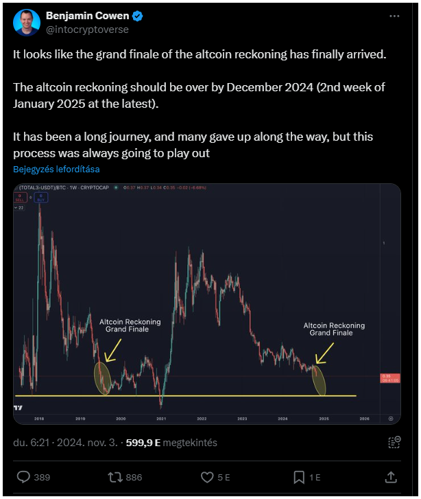 He believes we could see a similar pattern play out again in 2025. In another post, he noted that altcoin/Bitcoin pairs have been struggling for three years straight.