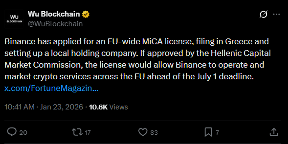 Binance just filed for an EU-wide MiCA license in Greece. They’re planting roots with a new “Binance Greece” holding company.