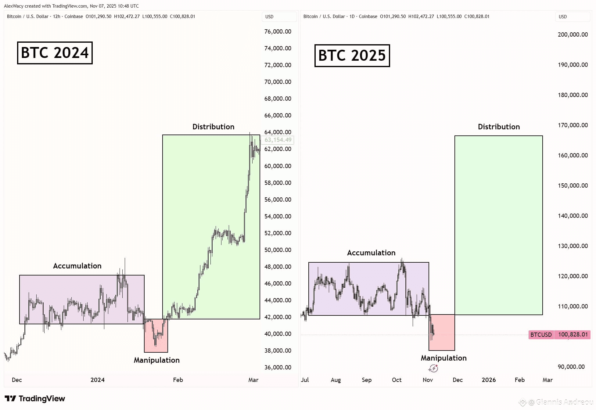 In his view, this phase mirrors the brief shakeout that hit Bitcoin in January 2024, when price dropped sharply before recovering.