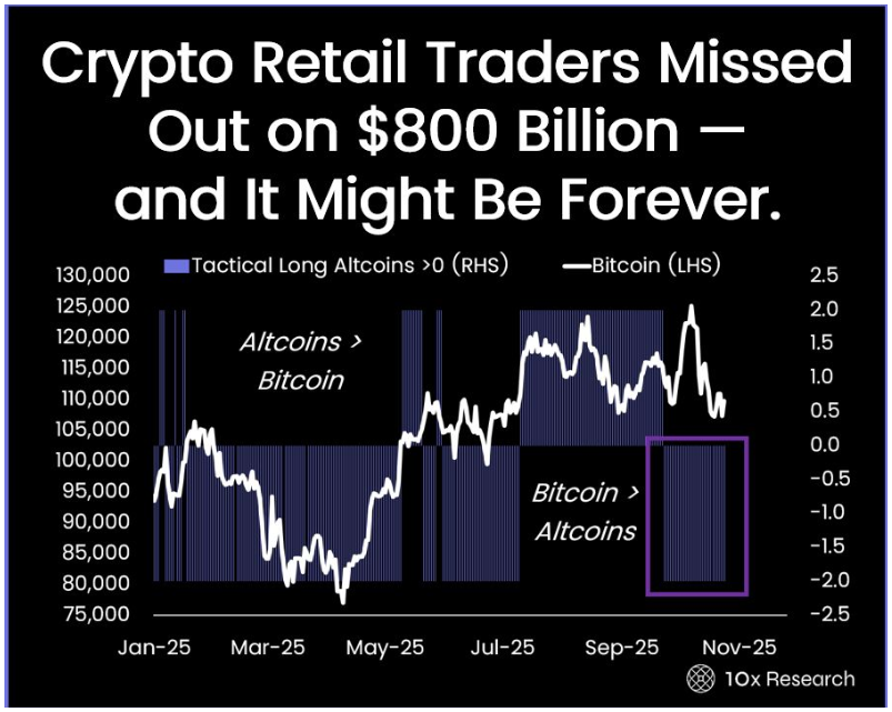 Nearly $800 billion has evaporated from the altcoin universe, leaving those smaller tokens gasping for air.