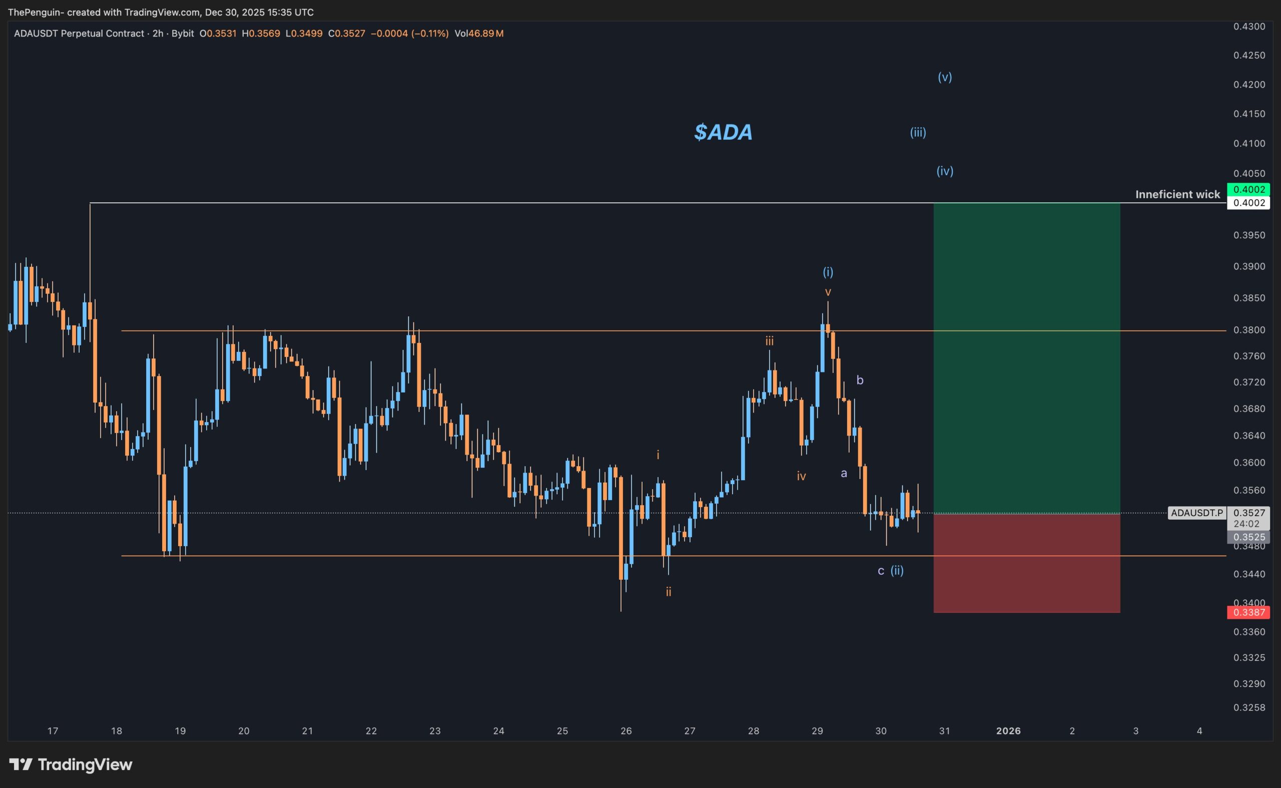 Cardano’s ADAUSDT perpetual contract traded near $0.3527 on the 2 hour Bybit chart as The Penguin said the multi time frame setup “looks really clean” after an impulse move and a completed correction.