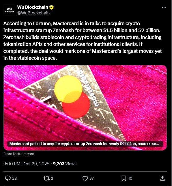 Rumors say Mastercard is about to drop $2 billion on Zerohash, a behind-the-scenes superstar in the crypto settlement game.