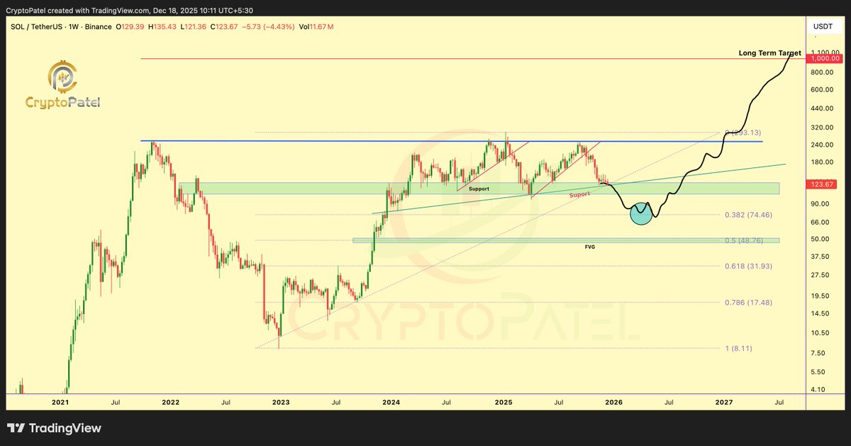 Solana Sits Near $120 Support as Weekly Chart Maps $70–$80 Retest Before Higher Targets