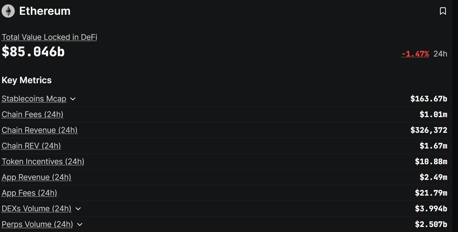 At the same time, the data still shows Ethereum in front. According to DefiLlama, Ethereum has over 163 billion dollars in stablecoin market cap and more than 85 billion dollars in total value locked.
