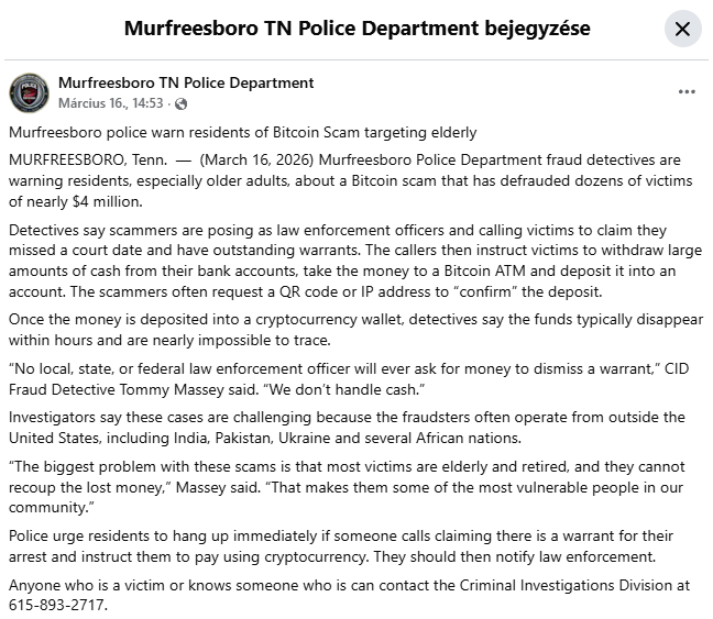 Fraud detective Tommy Massey told local outlets that once the funds move, they are typically gone within 72 hours, often transferred overseas, and the rise of AI tools has made it considerably easier for scammers to sound authoritative and personalized. The Bitcoin part is almost secondary.