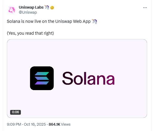Uniswap positioned Solana as part of a wider multi-chain plan. The web app already handles multiple networks, and now it adds Solana flow.