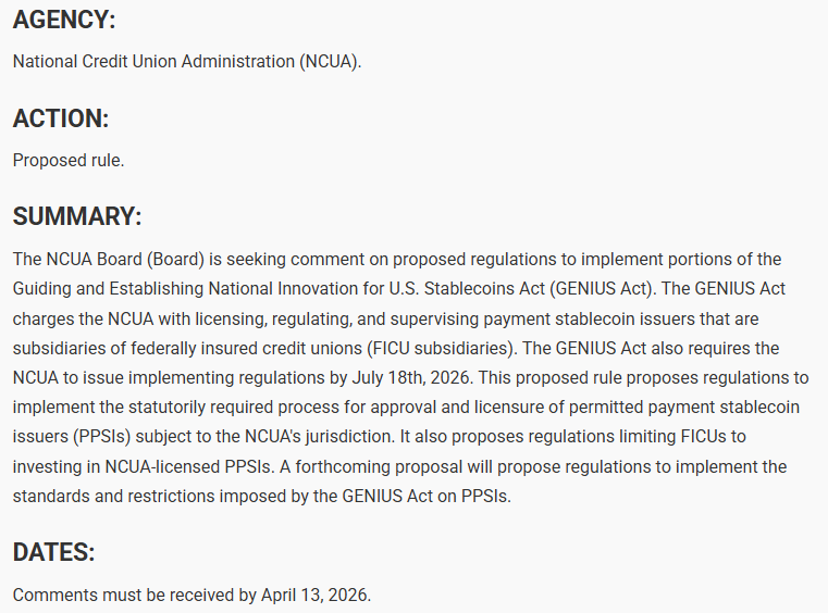 The National Credit Union Administration, the NCUA, the regulator that oversees these institutions, has proposed the first rules that would allow credit unions to issue their own stablecoins.